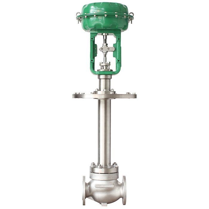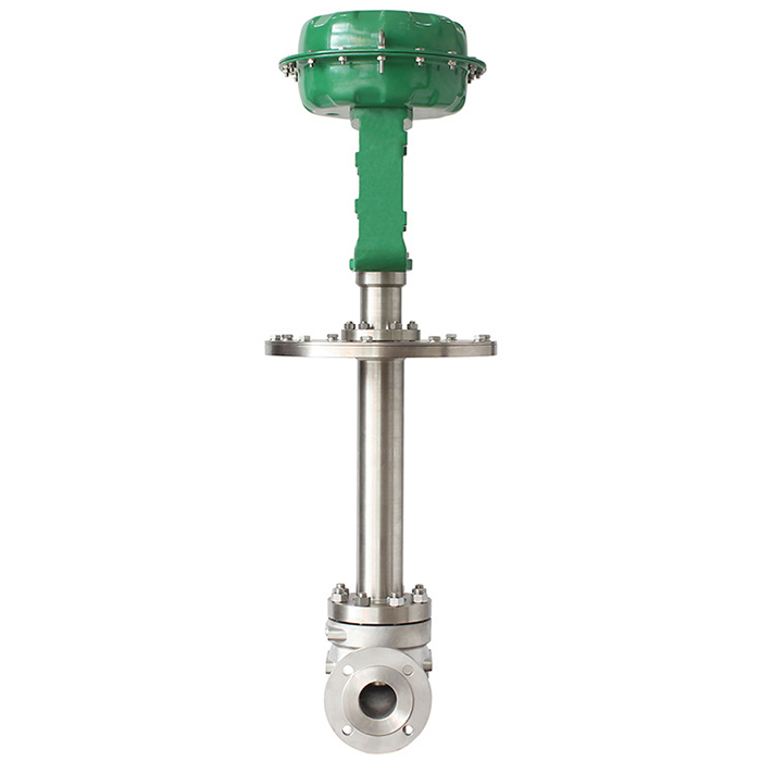 ZJHD气动低温调节阀,由气动薄膜执行器及低温调节阀阀体组成,多弹簧执行机构高度低、重量轻、装备简便。气动低温调节阀,阀体流道呈S流线型。气动低温调节阀具有结构紧凑、重量轻、动作灵敏、压降损失小、阀容量大、流量特性精确、维护方便等优点,适合于低于0~-250℃状态下工作,由气动薄膜执行机构和带长颈接管的阀体组成,长颈接管的作用是使阀杆密封出接近常温下工作,并减少外界热能传入。为减少传递,长颈采用薄壁结构。